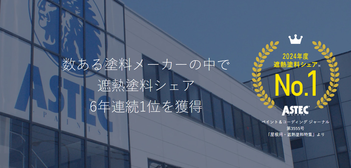 遮熱塗料のシェアNo.1(※1)の塗料メーカー「アステックペイント」では施工実績に応じてランク分けがされており、ナカガワクリエイトは全国2,700社以上(※2)の取扱店の中で加盟店に認定されております。メーカーより優良施工店として認められ、メーカーから製品保証だけでなく工事保証をお出しできます。​