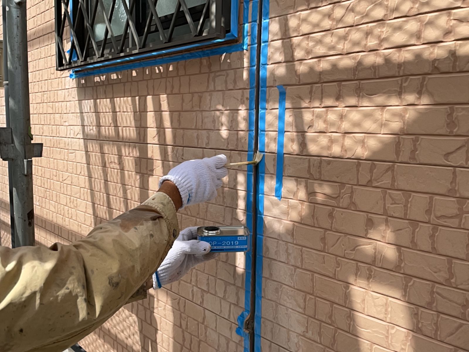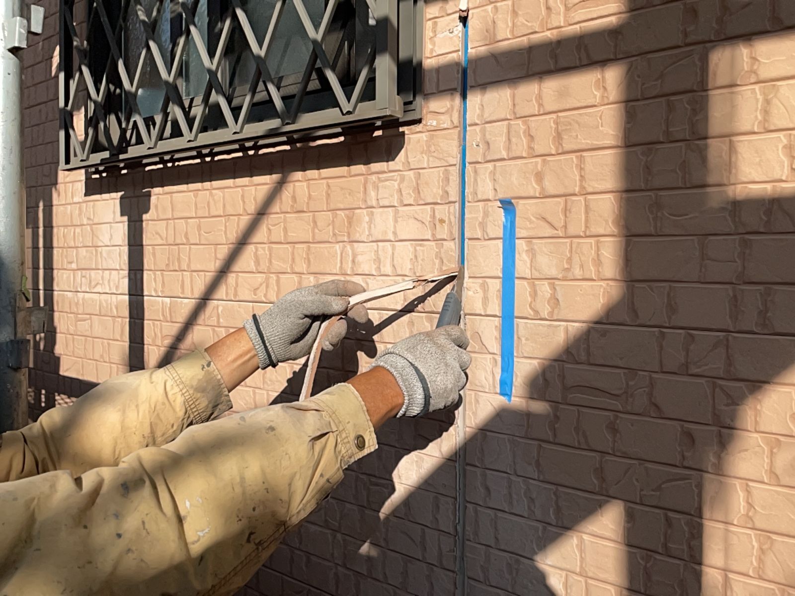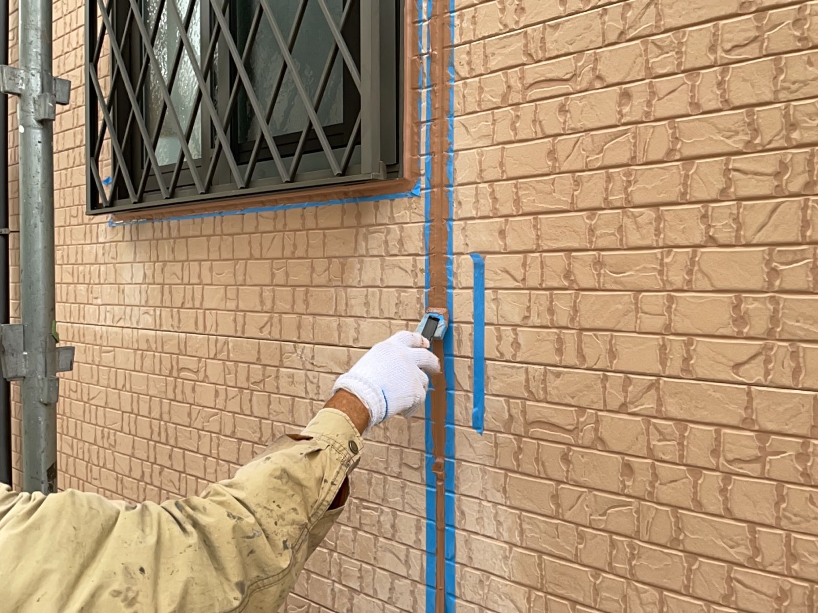 外壁目地のシーリングが経年の劣化により剥がれ、外壁のヒビ割れが確認できました。