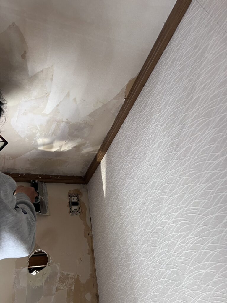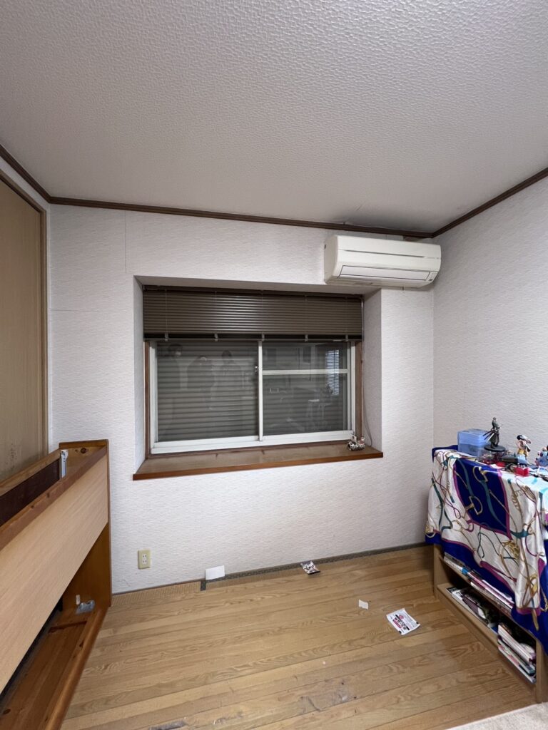 屋根軒裏の腐食とクロスが剝がれていた為、雨漏れの補修を行った後にクロス張替え工事をさせて頂きました。